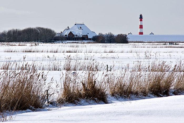 Haubarg und Leuchtturm Westerhever, 31. Januar 2010 um 13:48 Uhr.