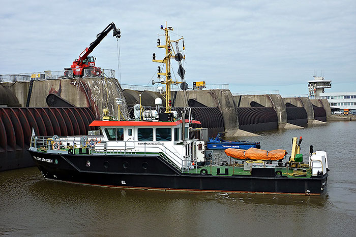 Die Schifffahrtspolizei vor dem Eidersperrwerk, 27. April 2010 um 13:23 Uhr.