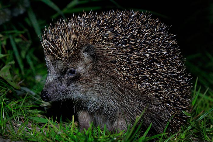 Igel in einer Vollmondnacht an der Warft Tofting, 26. Mai 2010 um 22:24 Uhr.