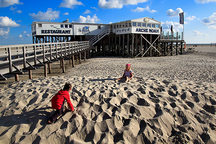 Spielende Kinder vor der "Arche Noah", St.Peter-Ording, 25. Juli 2010 um 18:59 Uhr.