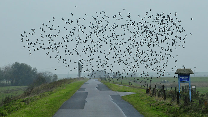 Vogelschwarm über dem "Kömdiek" im Neu-Augustenkoog, 27. Oktober 2010 um 12:03 Uhr.
