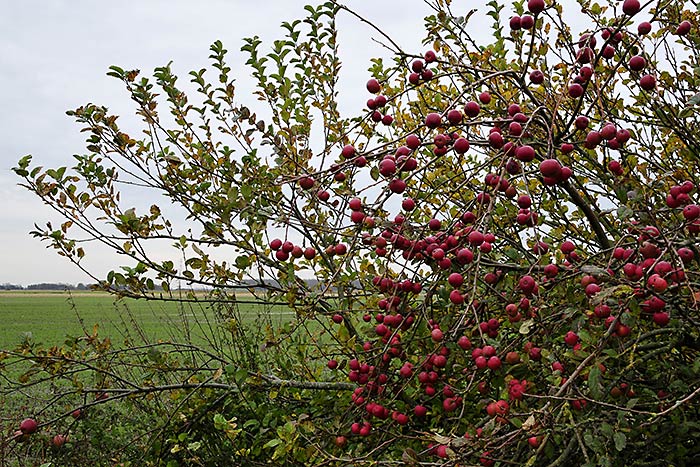 Rote Äpfel an einem wilden Baum im Katinger Watt, 30. Oktober 2010 um 11:37 Uhr.