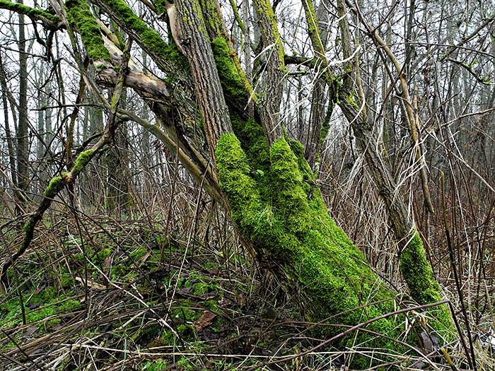 Abgestorbener Baum im "Moosmantel" im "Urwald" Katinger Watt. 15. Januar 2011 um 12:02 Uhr.
