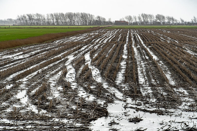 Landunter auf dem Acker, Maisstoppeln, Kömdiek/Augustenkoog. Freitag, 21. Februar 2020 um 12:39 Uhr. Foto © Copyright by JP Schneider