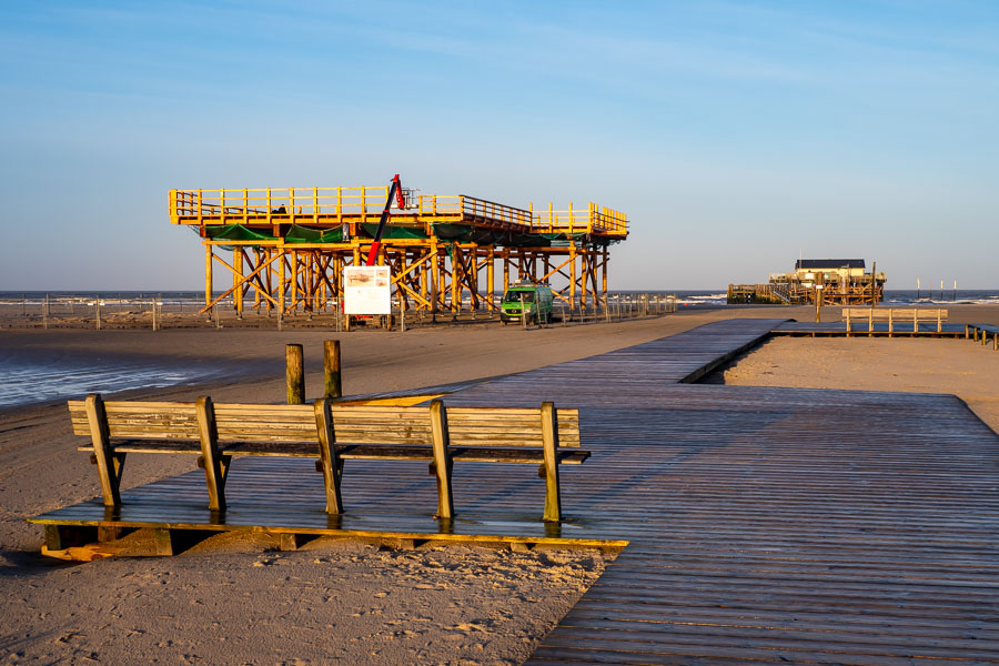 "Neubau eines Pfahlbaus / Hier entsteht die neue Strandbar 54° Nord / Ordinger Strand" Mittwoch, 21. Februar 2023 um 8:14 Uhr. Foto © Copyright by JP Schneider