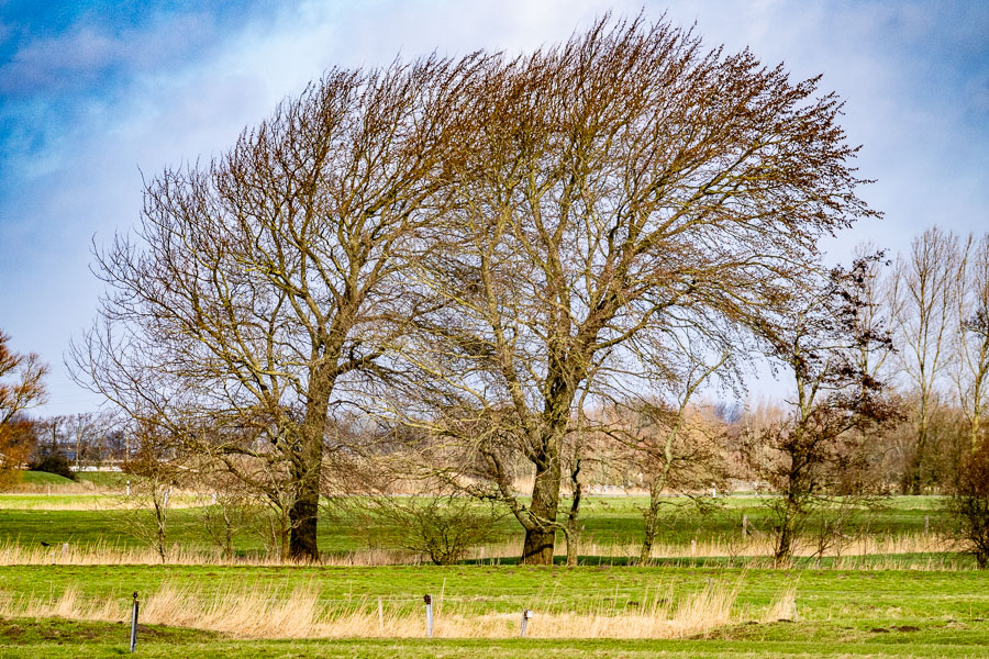 "Vom Wind gebeugt / Bäume in der Eiderstedter Landschaft" Freitag, 23. Februar 2023 um 11:36 Uhr. Foto © Copyright by JP Schneider