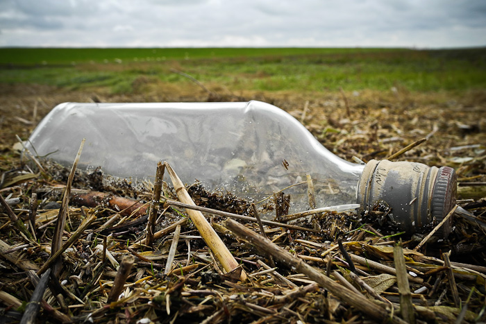 "Flasche OHNE Post" im Spülsaum vor dem Deich von Tümlauer Koog. 18. September 2011 um 13:09 Uhr