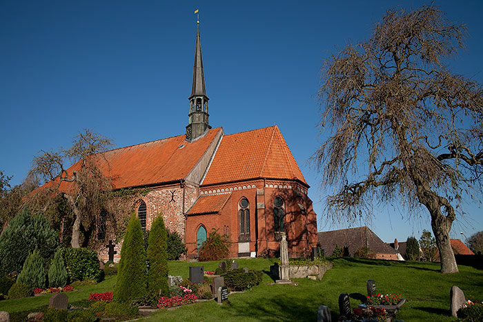 Strahlender Sonnenschein an diesem Sonnabendmorgen. Kirche St. Marien in Witzwort. 15. Oktober 2011 um 10:30 Uhr