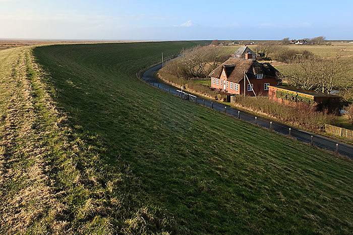 Achtern Diek. Reetdachhaus direkt hinterm Nordseedeich bei Westerhever. Sonntag, 19. Februar 2012 um 15:18 Uhr
