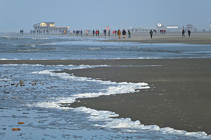 Strandspaziergang bei Sonnenschein, Wind und Wellen. St. Peter-Ording, Strandbar 54° Nord. Sonnabend, 25. Februar 2012 um 11:39 Uhr