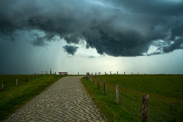 Deichauffahrt am Tümlauer Hafen / Gewitterwolken Sonntag, 8. Juli 2012 um 16:11 Uhr