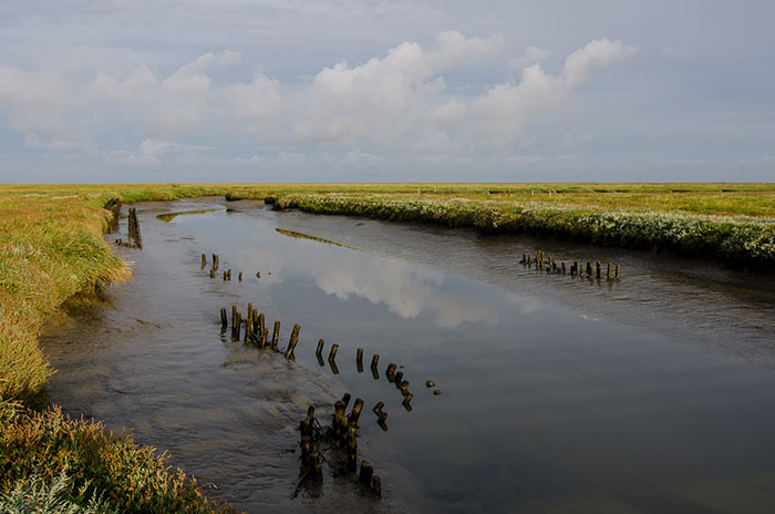 Priel durch die Salzwiesen bei Westerhever. Montag, 3. September 2012 um 7:51 Uhr