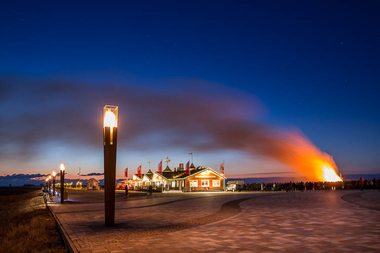 Das traditionelle Biikefeuer an der Promenade in St.Peter-Ording bei sternenklarem Himmel und minus 3° Celsius. Donnerstag, 21. Februar 2013 um 18:47 Uhr
