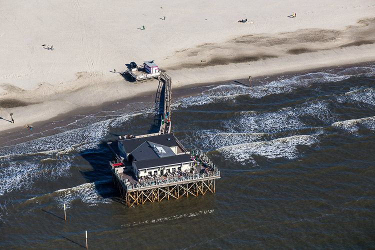 Pfahlbau "Strandbar 54° Nord". Bei normalem Hochwasser nur