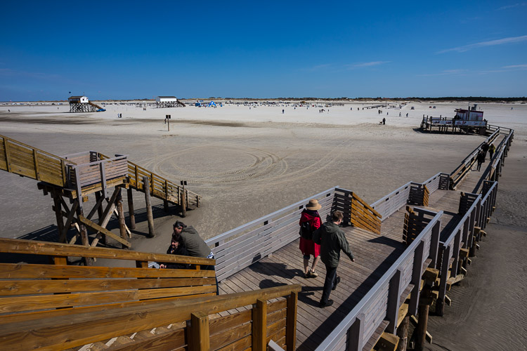 Die Brückenkonstruktion am Pfahlbaurestaurant "Strandbar 54° Nord". St.Peter-Ording. Donnerstag, 2. Mai 2013 um 13:37 Uhr
