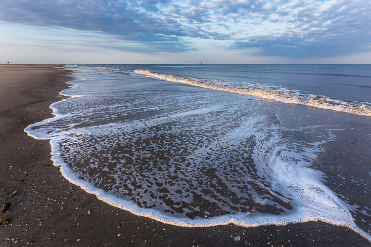 Die Nordsee spült über den Strand. St.Peter-Ording. Freitag, 3. Mai 2013 um 6:34 Uhr