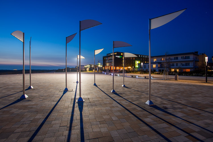 Windspiel im Scheinwerferlicht auf dem Seebrückenvorplatz im Ortsteil Bad. St.Peter-Ording. Freitag, 3. Mai 2013 um 22:05 Uhr