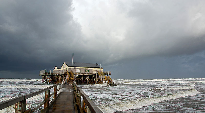 "Schweres Wetter" / Pfahlbaurestaurant "Strandbar 54° Nord" vor SPO. Sonntag, 3. November 2013 um 10:29 Uhr