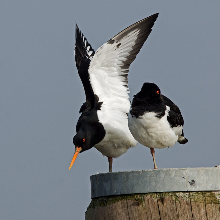 Austernfischer beim Stretching. Tümlauer Koog. Dienstag, 4. März 2014 um 12:01 Uhr