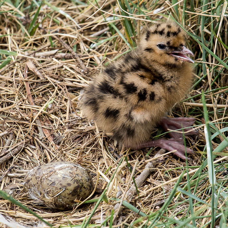 Ein Lachmöwenküken wartet auf sein Geschwisterchen. Lachmöwenkolonie am Eidersperrwerk (Südseite). Sonnabend, 14. Juni 2014 um 12:36 Uhr