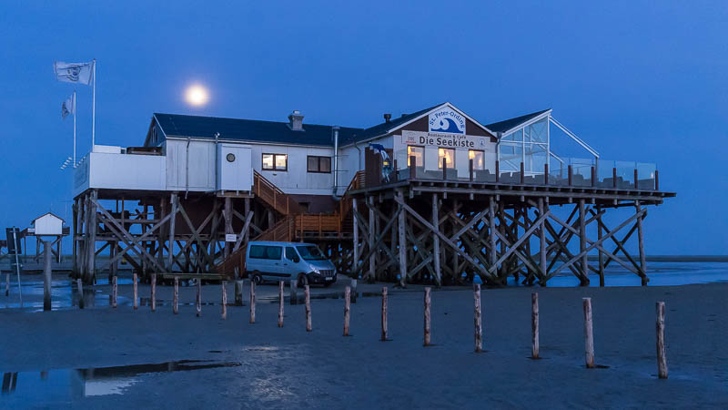 Vollmond über der "Seekiste" am Böhler Strand. Sonnabend, 9. August 2014 um 21:41 Uhr