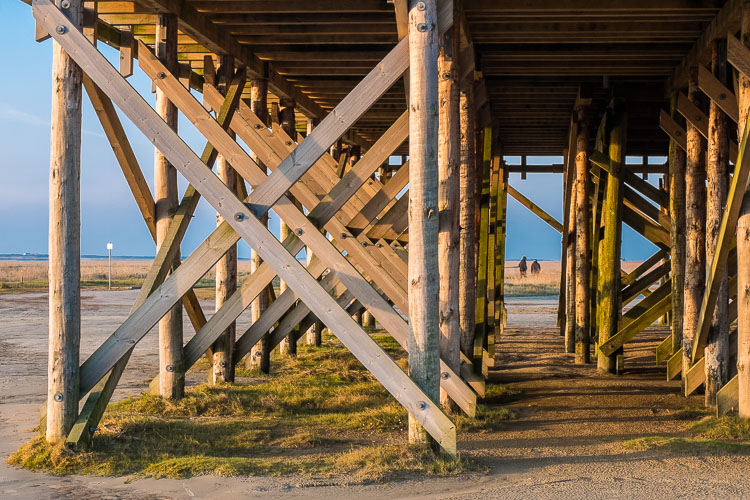 Pfahlbaukonstruktion der "Strandhütte" am Südstrand. St. Peter-Dorf. Mittwoch, 26. November 2014 um 15:02 Uhr
