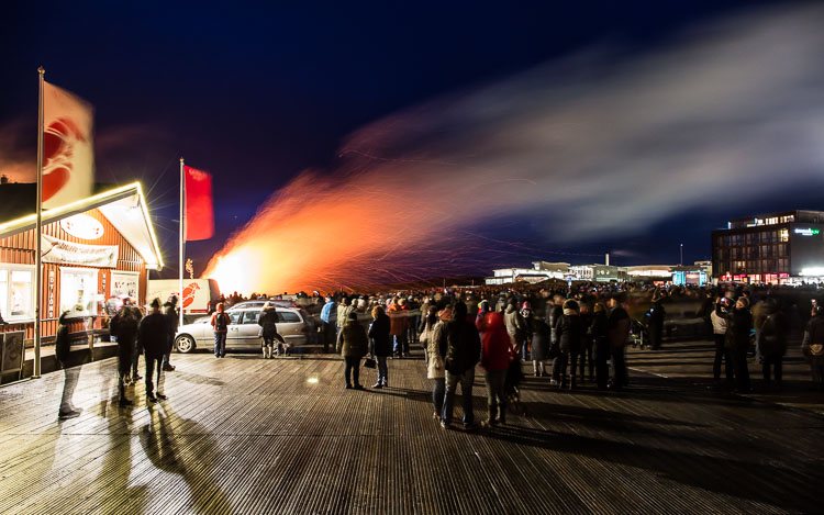 "Biikefeuer an der Promenade". Seebrückenvorplatz / St. Peter-Ording. Sonnabend, 21. Februar 2015 um 18:53 Uhr