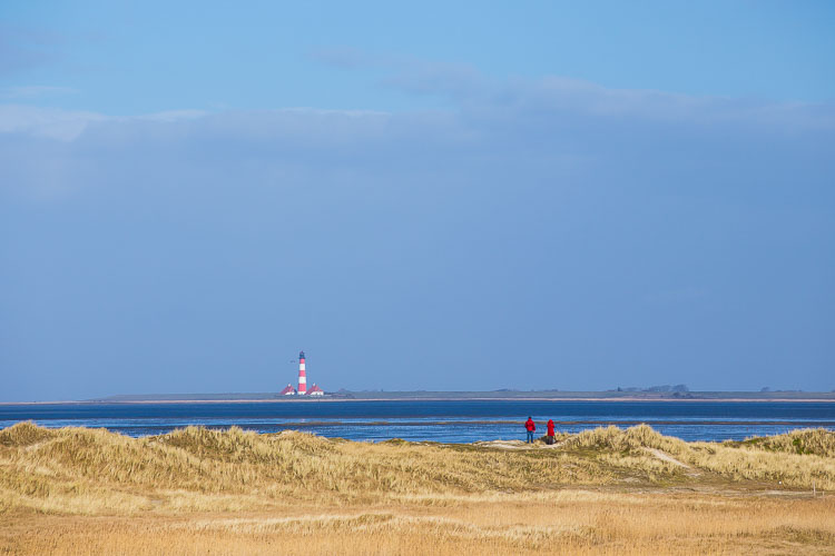 "Blick über die Tümlauer Bucht zum Leuchtturm Westerhever". Ordinger Dünen / St. Peter-Ording. Sonntag, 22. Februar 2015 um 13:35 Uhr