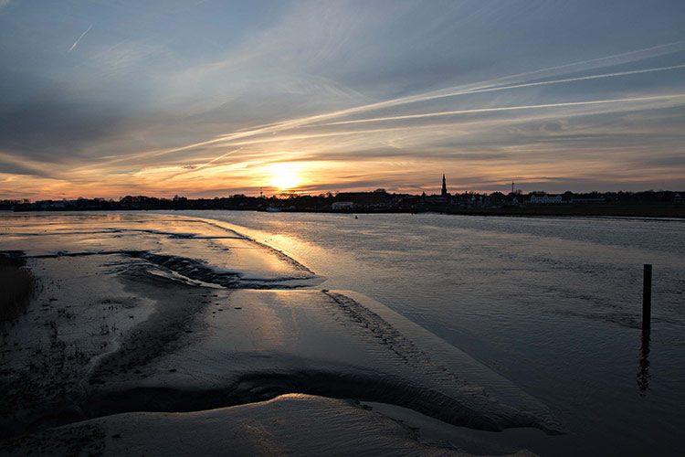 Blick von der Eiderbrücke in Richtung Tönning. Sonntag, 22. März 2015 um 18:26 Uhr