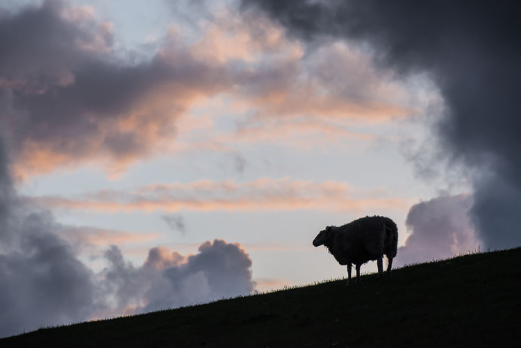 "Schaurigschön" - Ein Schaf auf der Deichkrone im Tümlauer Koog. Sonnabend, 16. Mai 2015 um 21:04 Uhr