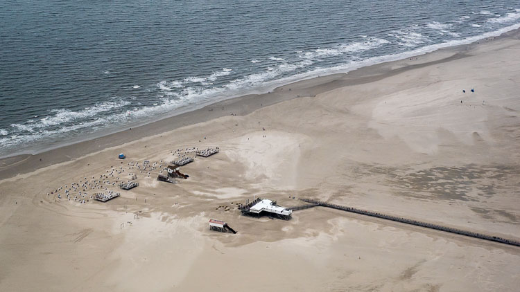 Strandkörbe und die Pfahlbaugruppe "Arche Noah" an der Seebrücke von St.Peter-Ording. Sonntag, 14. Juni 2015 um 11:05 Uhr
