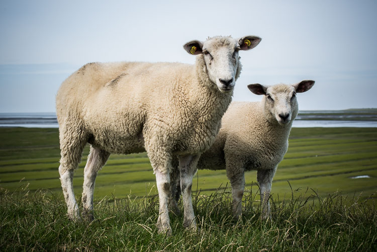 "Mutterschaf mit Lamm". Auf dem Deich von Tümlauer Koog. Sonntag, 2. August 2015 um 13:13 Uhr