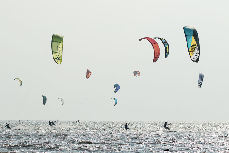 Kitesurfer im Gegenlicht. Ordinger Strand. Montag, 24. August 2015 um 16:48 Uhr