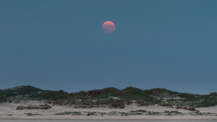 Vollmond. Aufgang über den Ordinger Dünen. Sonnabend, 29. August 2015 um 20:34 Uhr