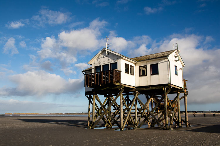 Ein Pfahlbau der Badeaufsicht am Strand von St.Peter-Ording. Sonntag, 13. Dezember 2015 um 12:48 Uhr