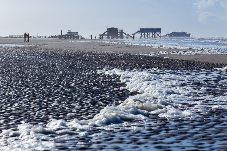 Spaziergang am Ordinger Strand. In der Bildmitte: Pfahlbau "Silbermöwe". Dienstag, 23. Februar 2016 um 11:57 Uhr