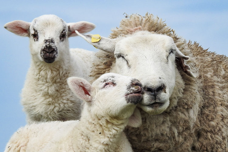 "Mutterschaf mit Lämmern" - Auf der Deichkrone bei Westerhever. Sonntag, 3. April 2016 um 11:57 Uhr