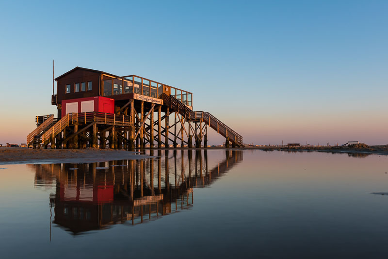 "Pfahlbau Silbermöwe" - kurz vor Sonnenuntergang am Ordinger Strand. Sonnabend, 7. Mai 2016 um 20:45 Uhr