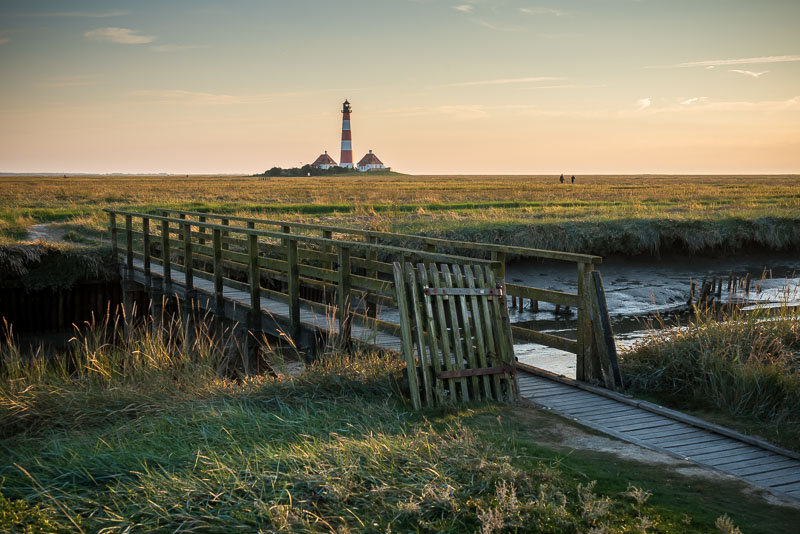 "Holzbrücke über ein Priel im Deichvorland" - Leuchtturm Westerhever. Sonntag, 25. September 2016 um 18:40 Uhr