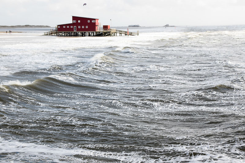 "Das H2O Wassersportcenter in seinem Element" Ordinger Strand bei Westwind und Hochwasser. Sonnabend, 15. April 2017 um 17:34 Uhr