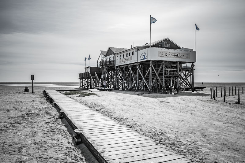 "Restaurant DIE SEEKISTE" im Sonnenschein und Gegenlicht am Böhler Strand. Montag, 15. Mai 2017 um 16:25 Uhr