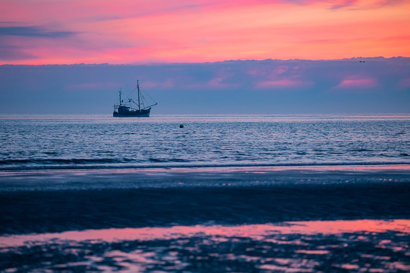 "Krabbenkutter nach Sonnenuntergang" - am Strand von St.Peter-Ording. Montag, 19. Juni 2017 um 22:38 Uhr