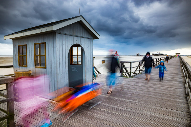 "Wettlauf mit den dunklen Wolken" - Alte Seebrücke von St. Peter-Ording. Sonntag, 25. Juni 2017 um 18:27 Uhr