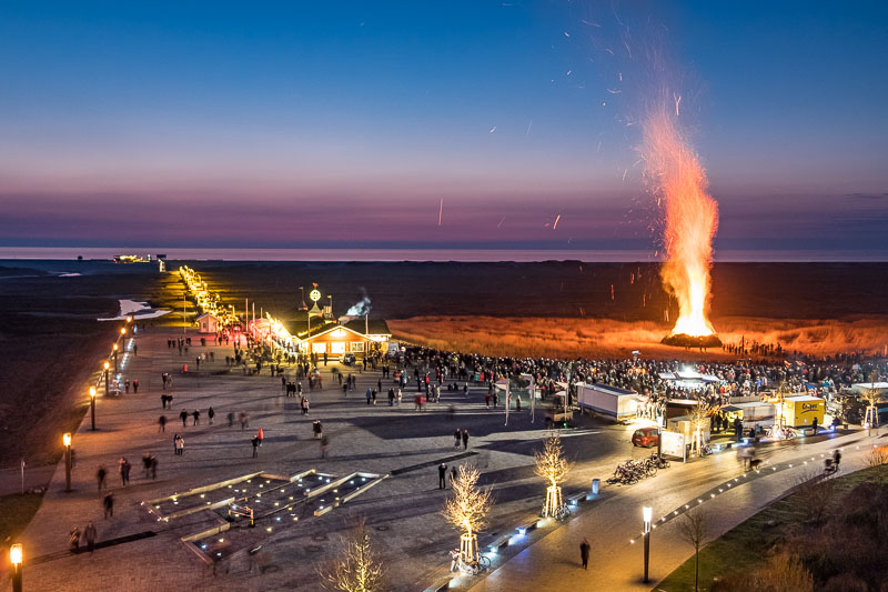 St.Peter-Ording. Erlebnis-Promenade. Das traditionelle Biike-Feuer lodert. Ausnahmsweise mal bei Windstille ;-) Mittwoch, 21. Februar 2018 um 18:44 Uhr
