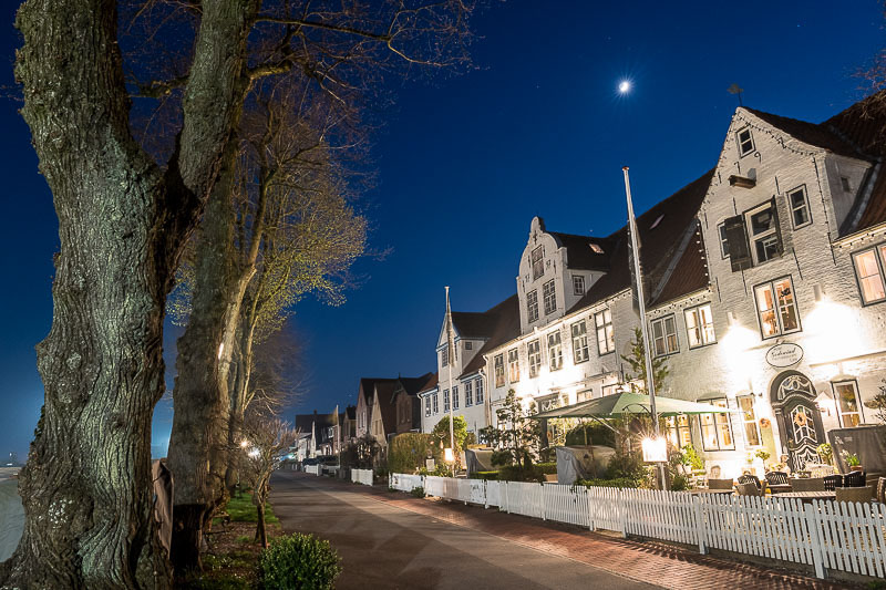 Häuserzeile am Tönninger Hafen. Freitag, 20. April 2018 um 21:47 Uhr