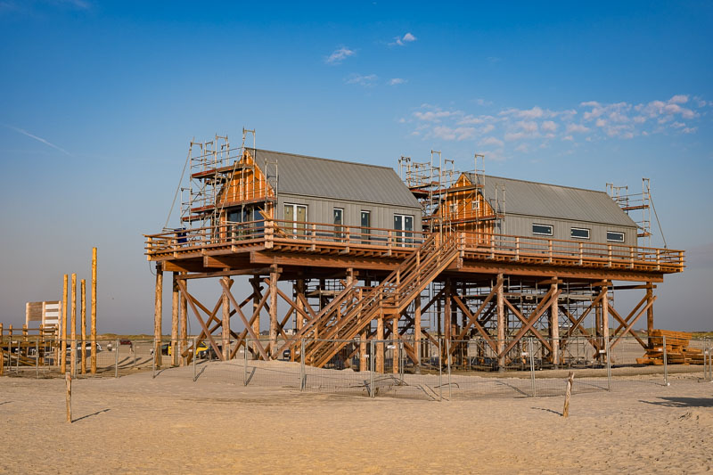 Der erste Neubau eines Pfahlbaus nimmt Formen an. Ordinger Strand. Montag, 15. Oktober 2018 um 16:44 Uhr