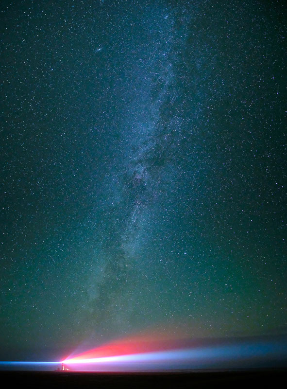 Mitternacht. - Die Milchstraße über dem Westerhever Leuchtturm. Dienstag, 16. Oktober 2018 um 23:59 Uhr