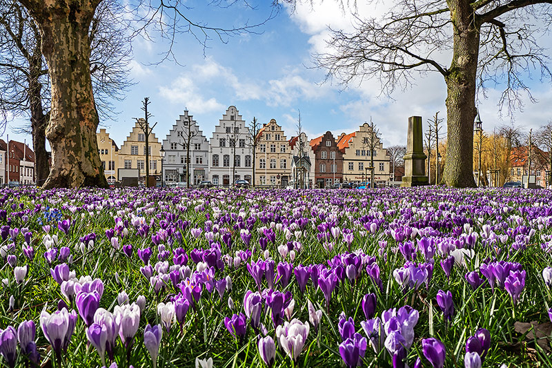 Krokusse am Marktplatz von Friedrichstadt. Montag, 11. März 2019 um 15:59 Uhr