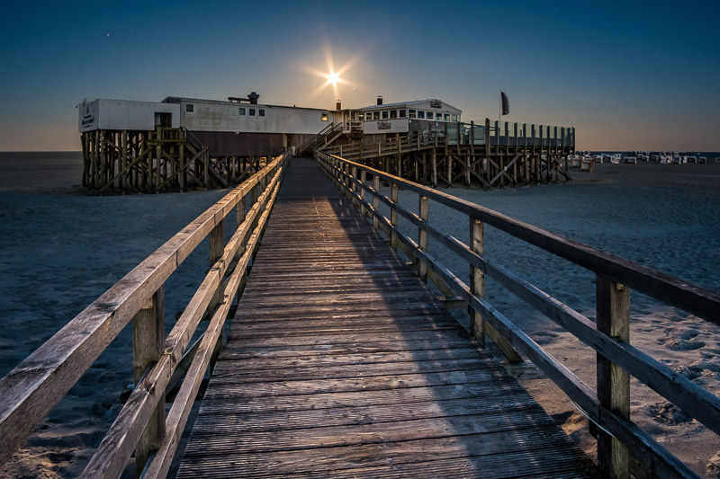 Vollmond über der "Arche Noah" am Strand von St.Peter-Ording um drei Uhr nachts ! Montag, 17. Juni 2019 um 3:05 Uhr.