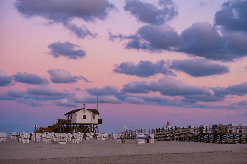 Eine viertel Stunde nach Sonnenuntergang am Strand von St.Peter-Ording. Freitag, 21. Juni 2019 um 22:16 Uhr.
